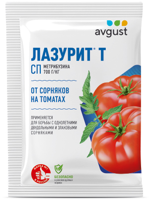 Лазурит обеспечивает защиту культуры на протяжении 1-2 месяцев и способствует получению хороших урожаев. Применять Лазурит нужно согласно инструкции. Как и любой другой гербицид, приготовление рабочего раствора производится путём разведения концентрата сначала в небольшом количестве воды (до 1 литра), а затем добавления воды до необходимого количества. Рабочий раствор хранению не подлежит, то есть использовать его нужно сразу. Опрыскивание проводится по листьям и стеблям в безветренную погоду, желательно в утренние (до 10:00) и вечерние (после 18:00) часы. Преимущества: - Уничтожает сорняки в момент их прорастания в довсходовом или в течение 10-20 суток при послевсходовом применении. - Обеспечивает защиту на протяжении 1-2 месяцев. - Не оказывает отрицательного влияния на картофель. - Применяется для борьбы со многими видами сорных растений. - Обладает продолжительным периодом защитного действия. - Эффективно подавляет проростки сорняков в почве. - Воздействует как при обработке почвы, так и при опрыскивании сорняков в посадках в фазе до 3-5 листьев культуры. - Не оказывает отрицательного влияния на томаты. Действующее вещество: 700 г/кг метрибузина Препаративная форма: смачивающийся порошок