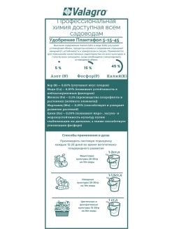 Профессиональное удобрение теперь доступно всем садоводам.Заводская фасовка!!!PLANTAFOL 5-15-45 это смесь хелатов макро- и микроэлементов с EDTA, обогащенная специфическими поверхностно-активными веществами, особым образом задумана для листовой подкормки, которые отличаются высокой степенью растворимости и полностью поглощаются листьями за короткое время.Удобрение 5-15-45 стимулирует обменные процессы в растительном организме. Помогает улучшить вкус, структуру и общее качество урожая. Укрепляет защитную систему. Вносится во время созревания урожая. Формула хороша для осенней подкормки.Продукты содержат микроэлементы в форме хелатов ЭДТА и могут использоваться в сочетании с наиболее распространенными пестицидами.Химический состав продукта (100г): Общий азот 5,0%, из которого: Нитратный азот 5,0% Фосфорный ангидрид 15,0% Окись калия 45,0% Бор 0,02% Медь 0,05% Железо 0,1% Марганец 0,05% Цинк (Zn) 0,05%.